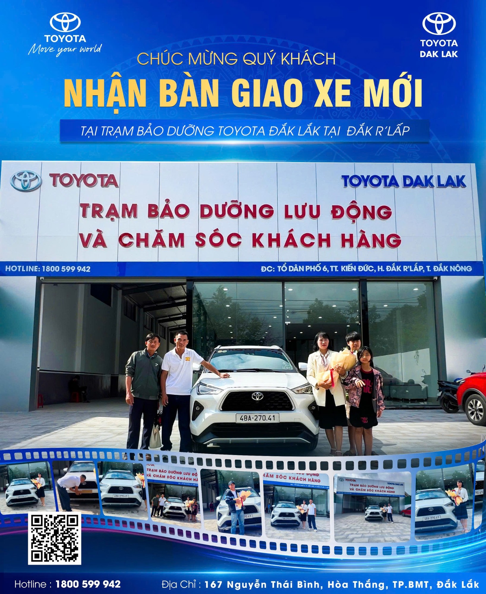 Toyota Dak Lak xin trân trọng cảm ơn anh Đào Duy Cảnh – khách hàng đầu tiên tại Trạm bảo dưỡng Đắk R’Lấp. Chiếc xe mới bàn giao hôm nay chính là khởi đầu cho một hành trình mới, nơi mỗi chuyến đi của anh và gia đình sẽ trọn vẹn an tâm và niềm vui.